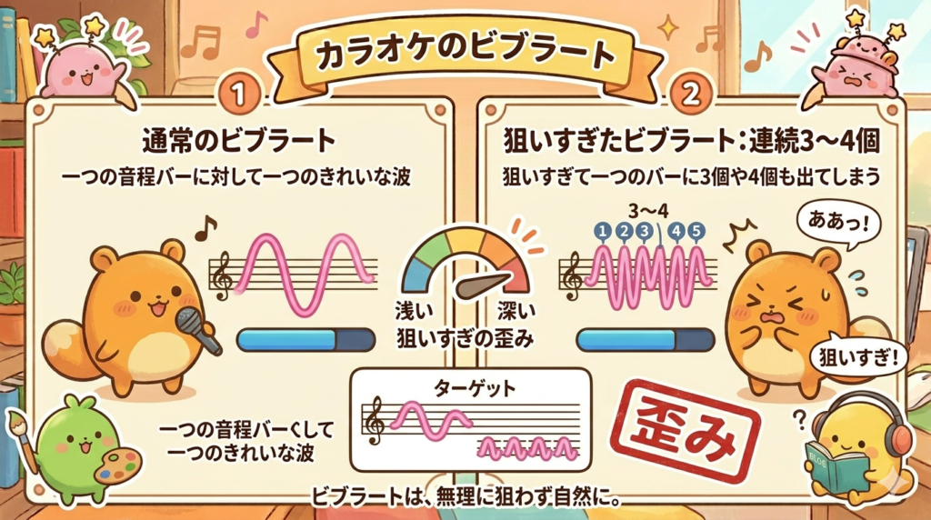 具体的に言いますと、ビブラートって狙って出そうとすると一つの音程バーに対して3つとか4つ出たりしたことありませんか?
